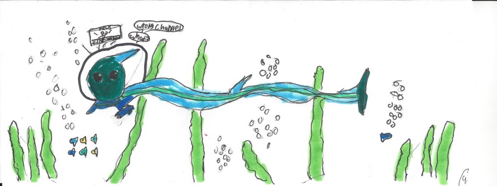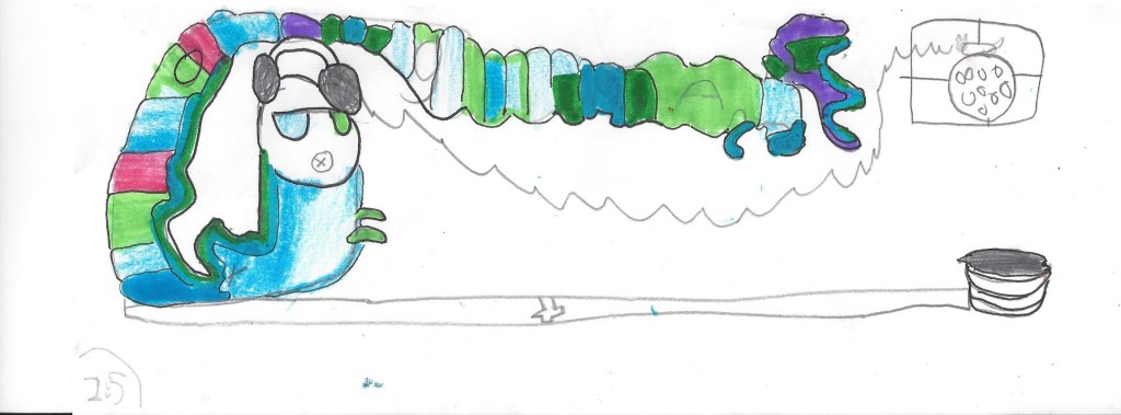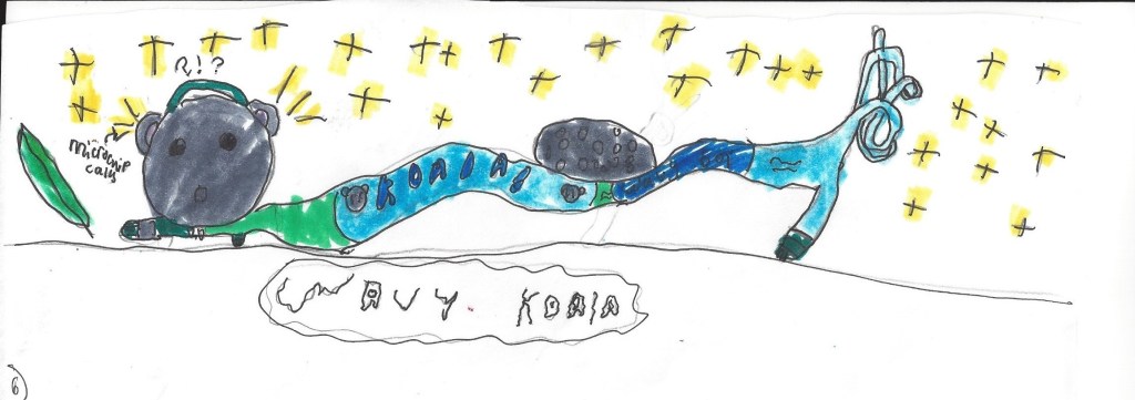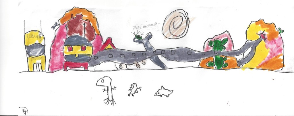 See that red wavy thing? Yeah, it is Wavy, a red panda. He’s the first animal in space. The only reason he’s saying “oh no!” is that he dropped the microchip he was supposed to put on the moon.